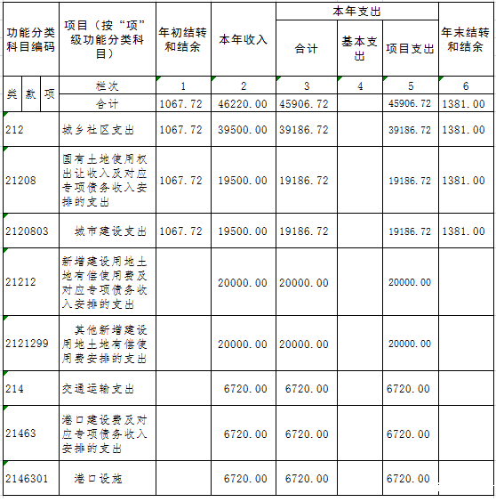 备注:本表反映部门本年度一般公共预算财政拨款和政府性基金预算财政拨款的总收支和年末结转结余情况。
