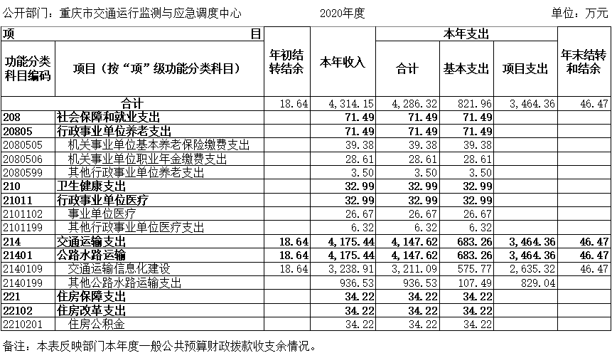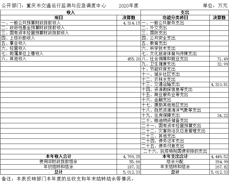 重庆市交通运行监测与应急调度中心2020年度部门决算情况说明