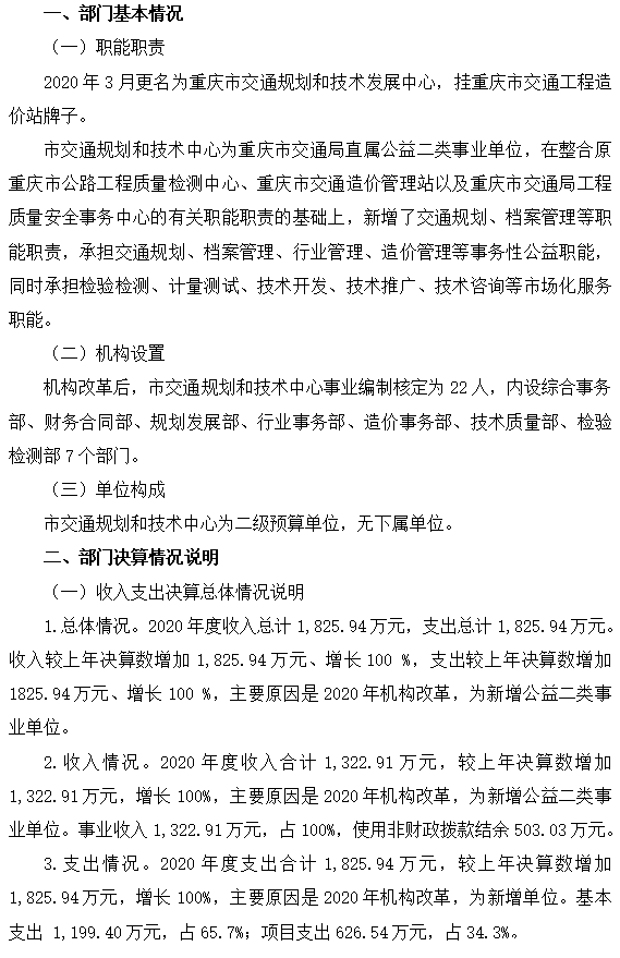 重庆市交通规划和技术发展中心2020年度部门决算情况说明