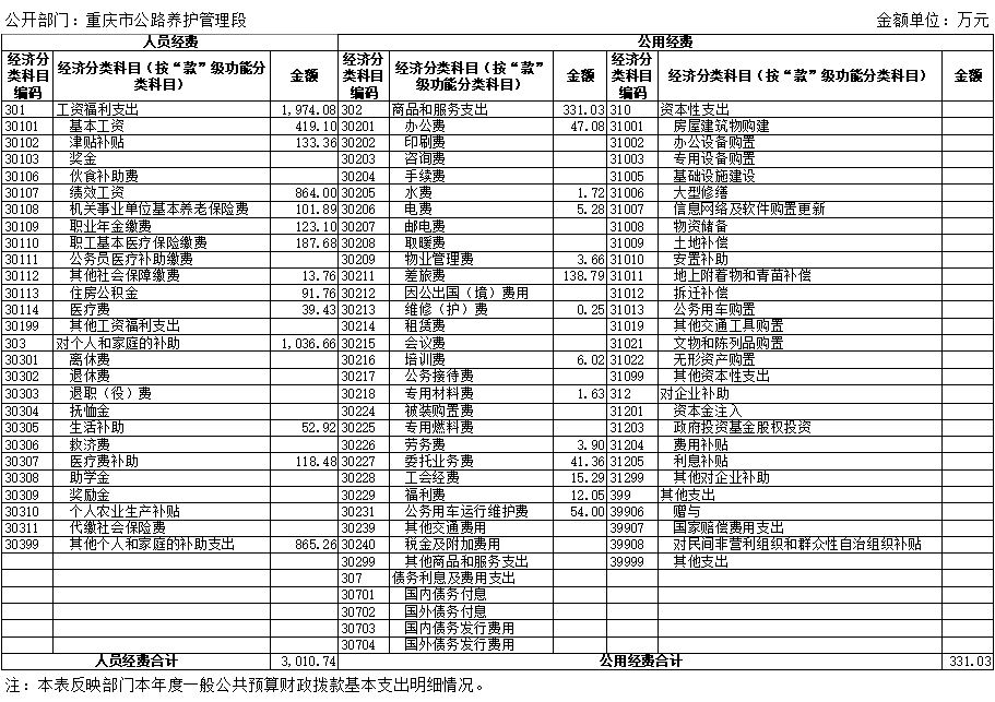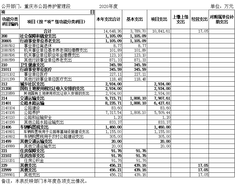 重庆市公路养护管理段2020年度部门决算情况说明
