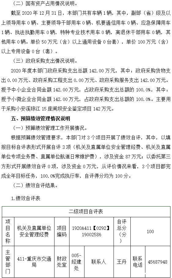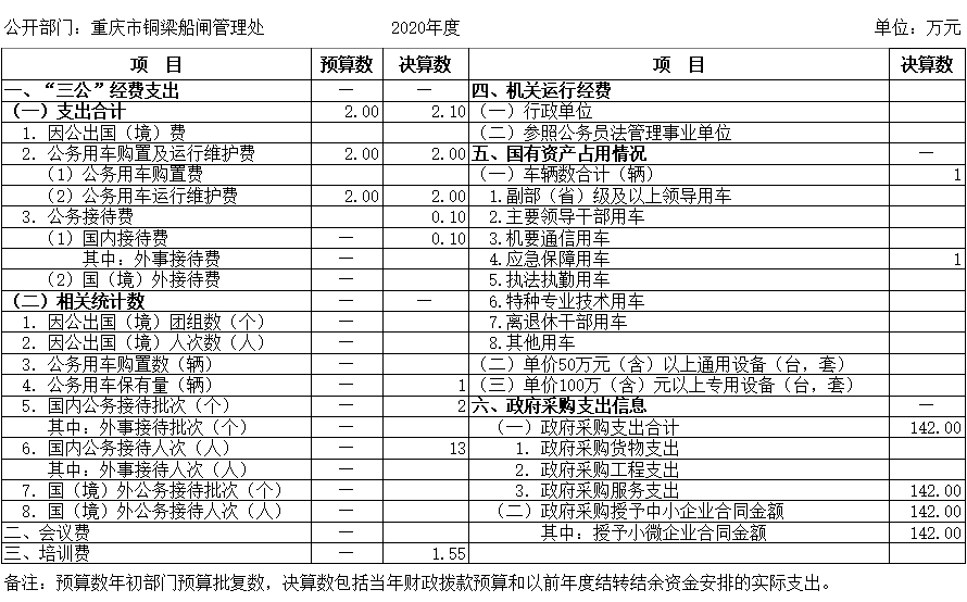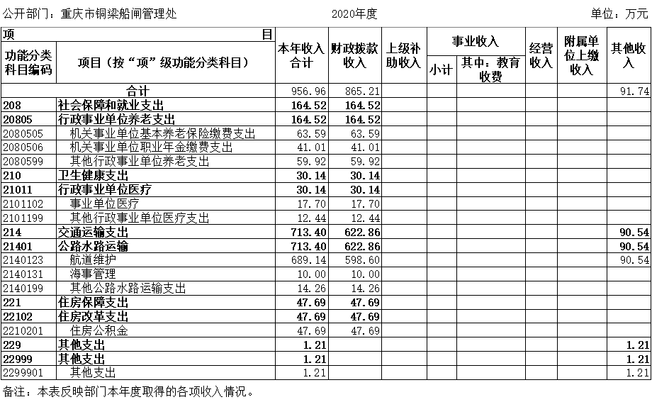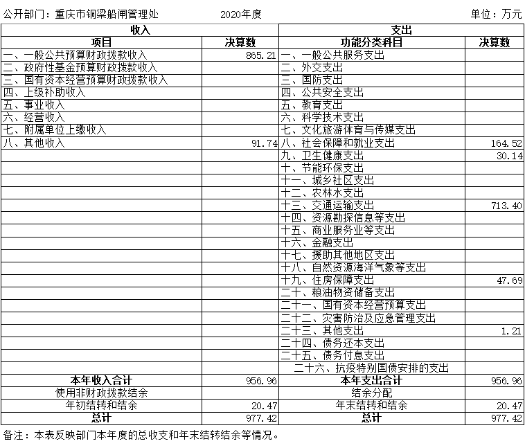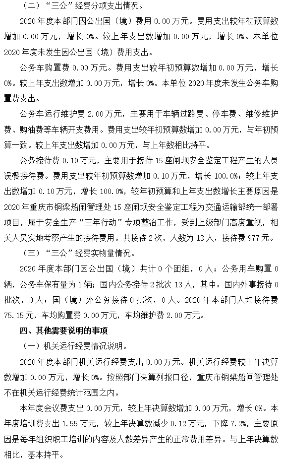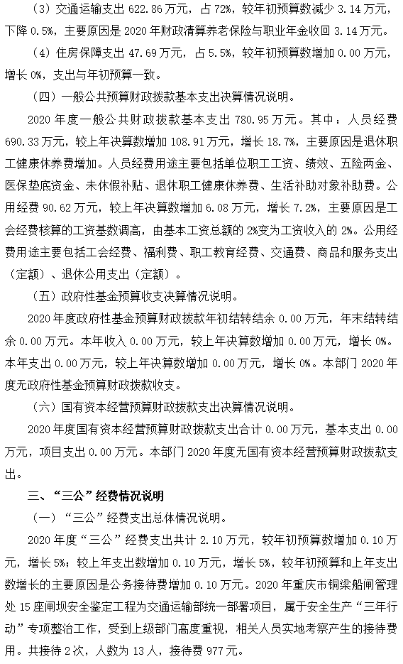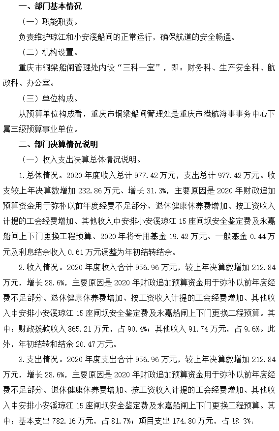 重庆市铜梁船闸管理处2020年度部门决算情况说明