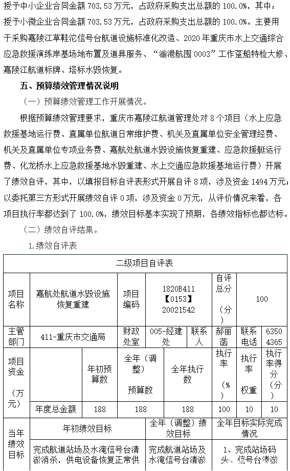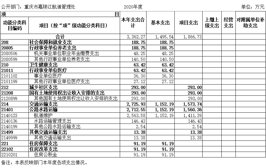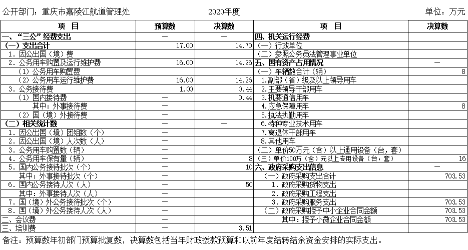 重庆市嘉陵江航道管理处2020年度部门决算情况说明