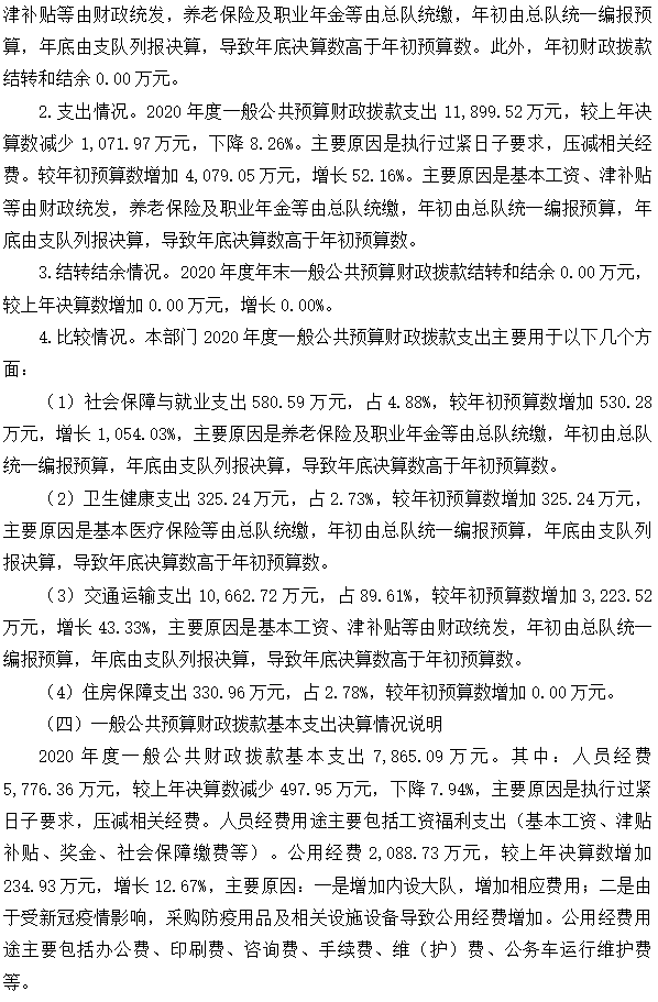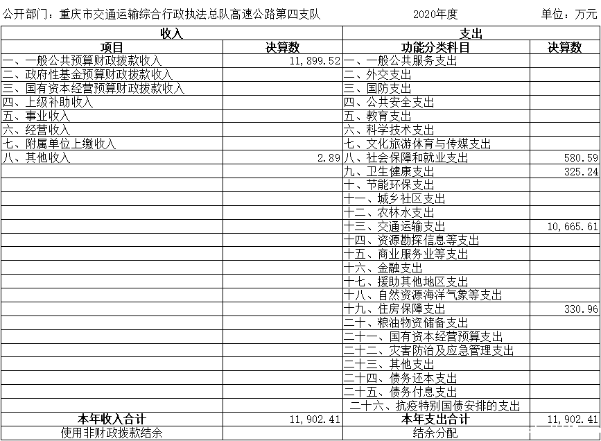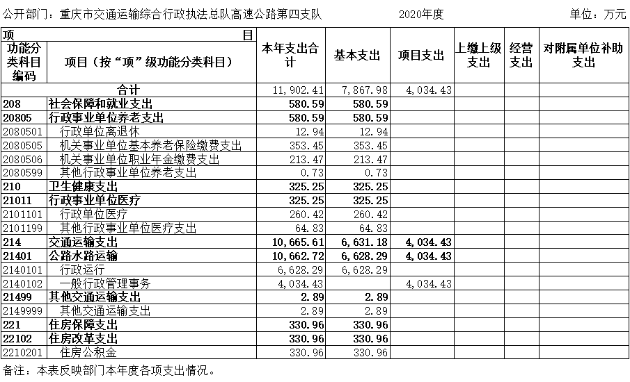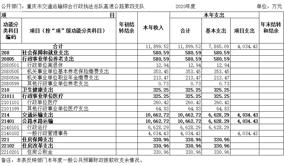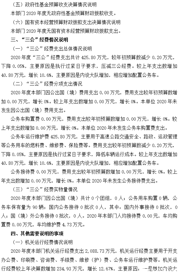 重庆市交通运输综合行政执法总队高速公路第四支队2020年度部门决算情况说明