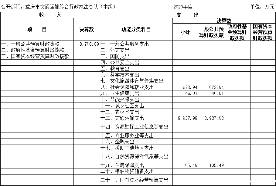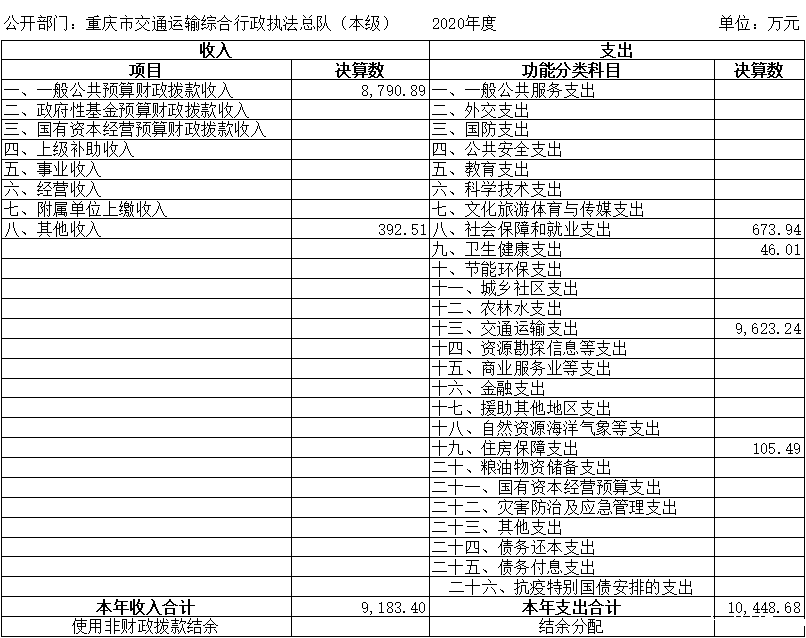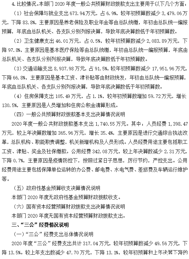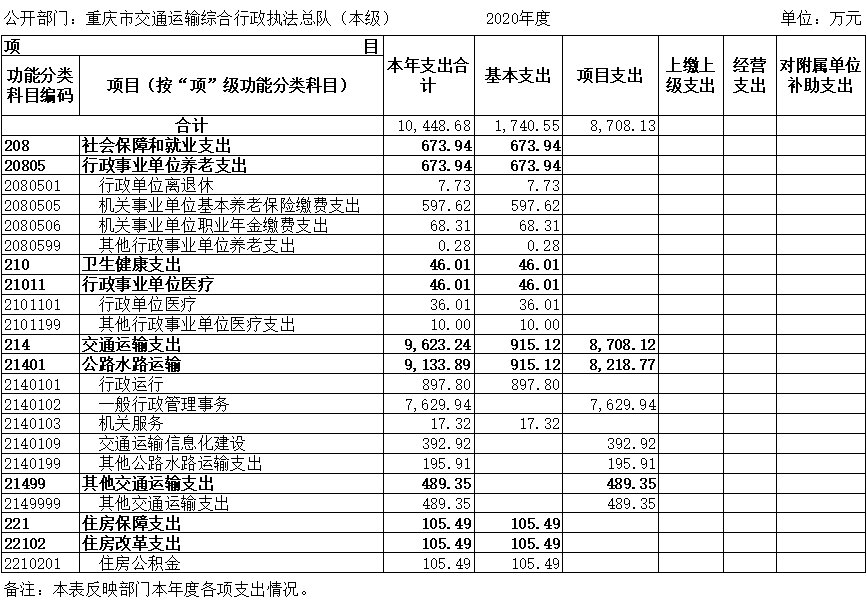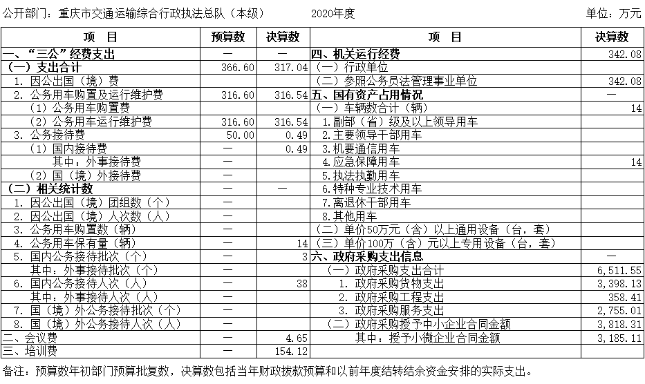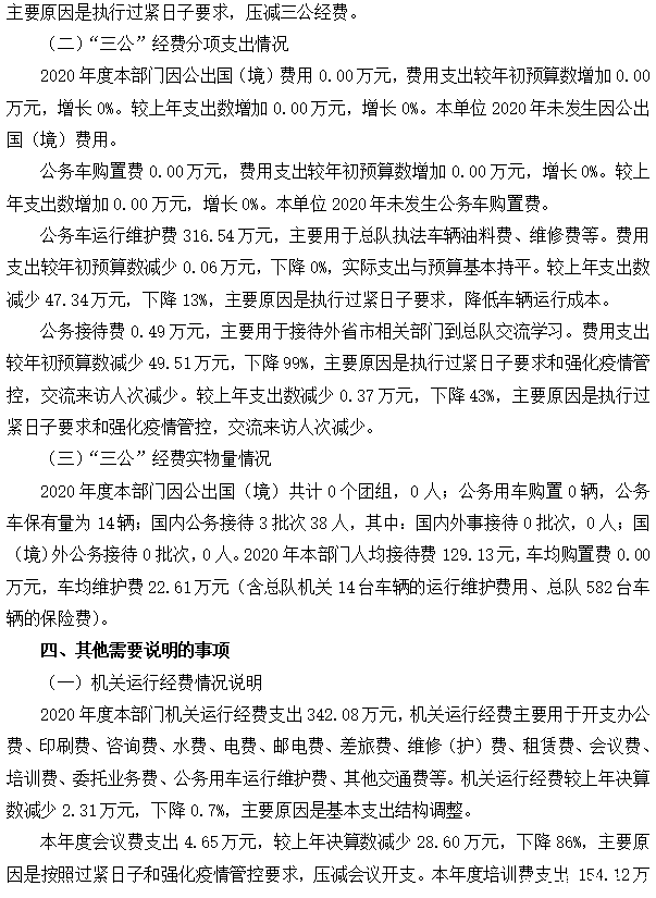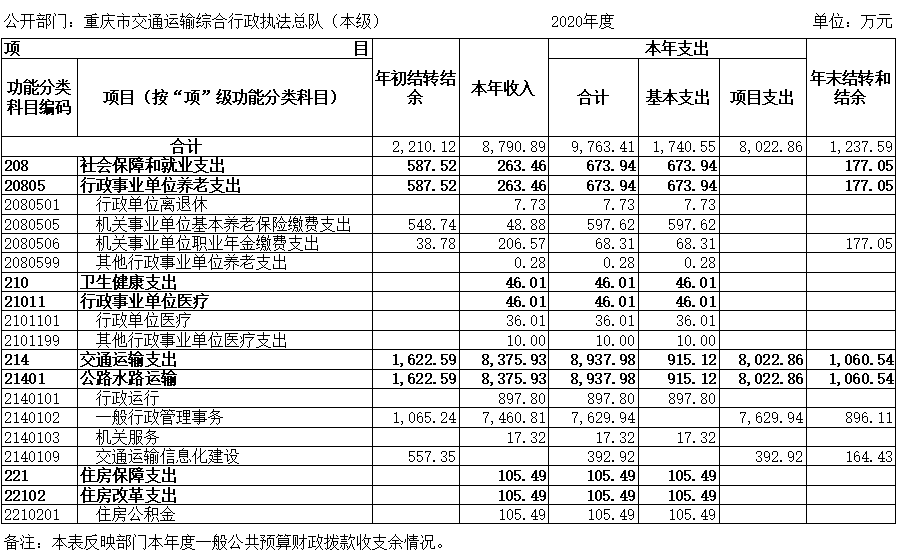重庆市交通运输综合行政执法总队(本级)2020年度部门决算情况说明