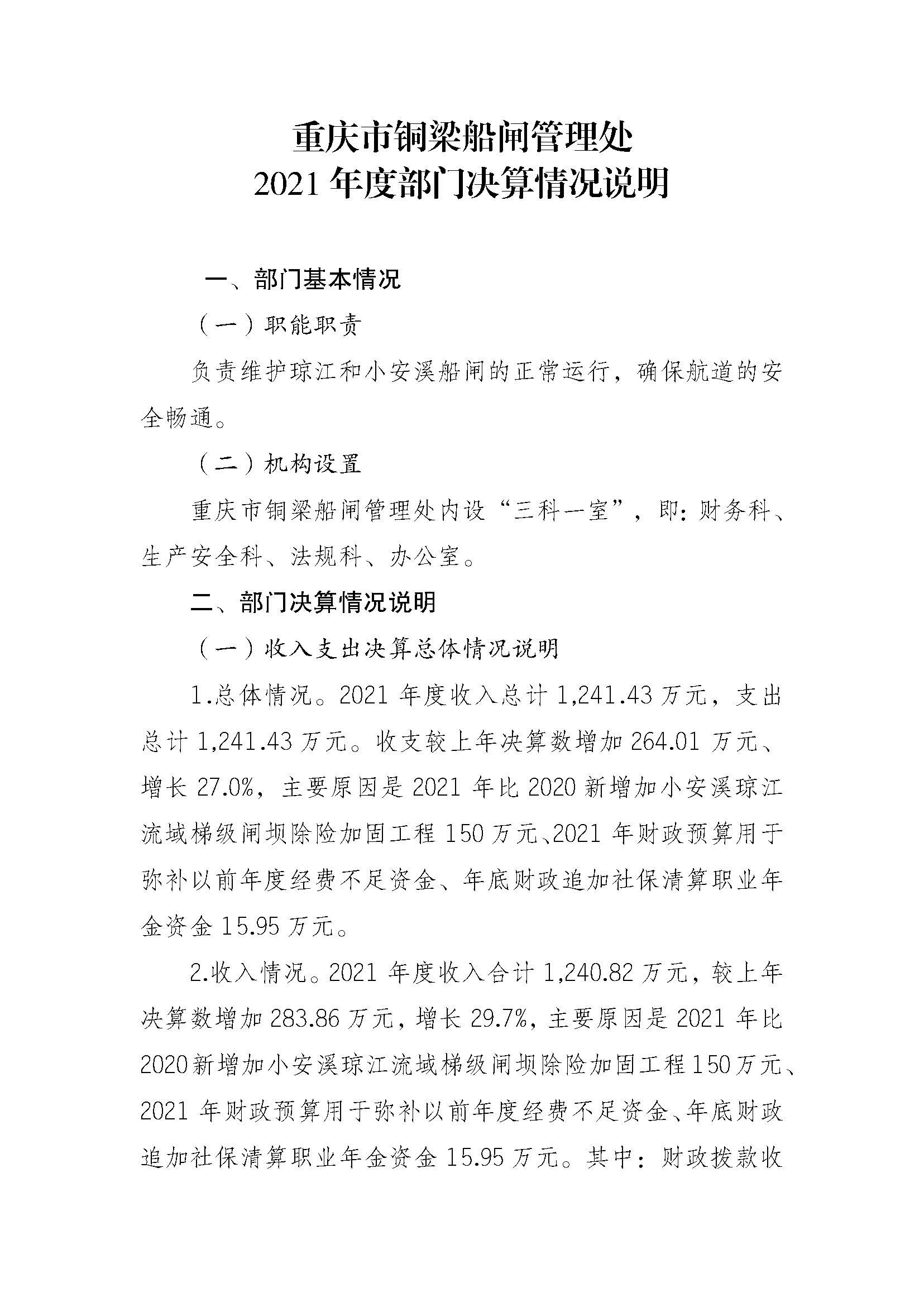 重庆市铜梁船闸管理处2021年度部门决算情况说明