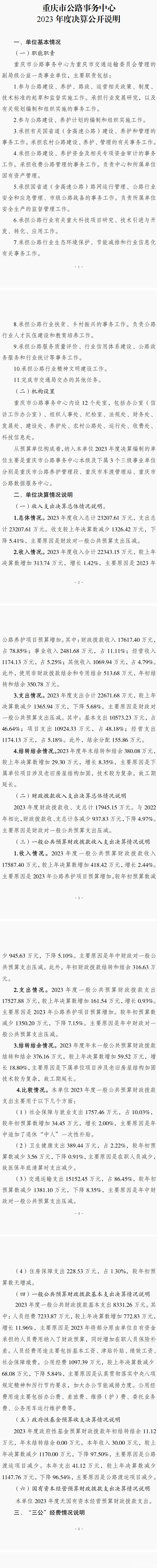 重庆市公路事务中心2023年度部门决算情况说明